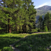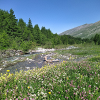 Mountain forest with flowers