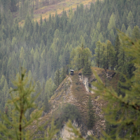 Larch trees in the mountains